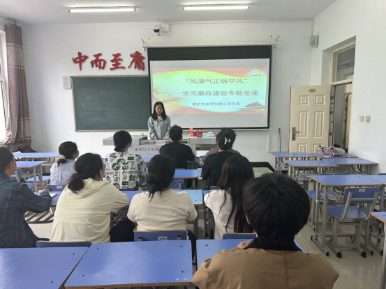 为深入开展党纪学习教育,切实增强党员廉洁自律意识,营造风清气正的校园文化氛围,康护专业学生第三党支部于2024年5月21日17点,在1#1209教室开展“讲廉政故事”主题党日活动。此次活动采取讲述廉洁故事、观看警示教育片等形式,内容丰富,活动由党支部组织委员张道勇主持,支部全体党员参加。