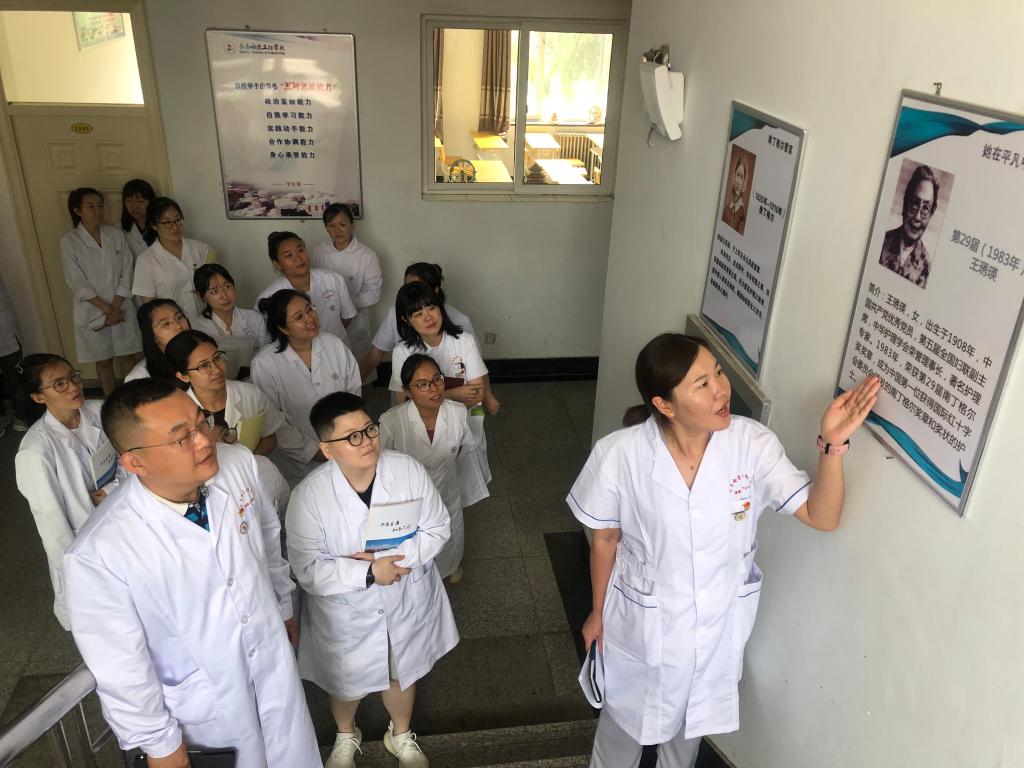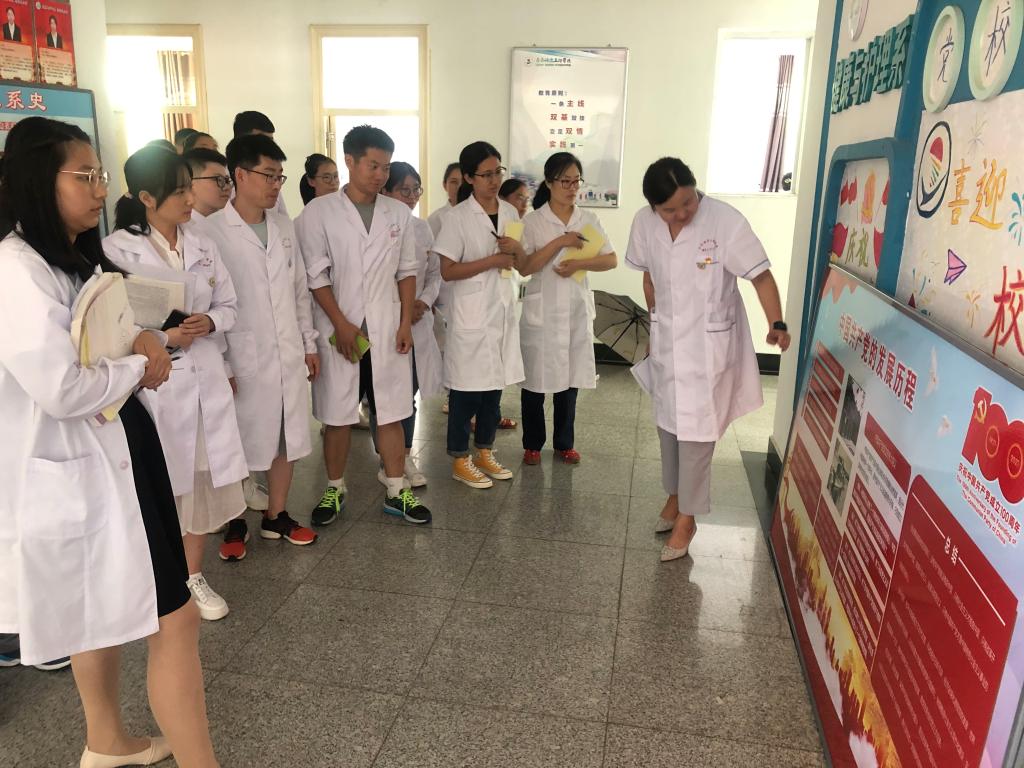 为了更好地强化党史学习教育,切实增强全体教职工知史爱党,知史爱国的情怀。7月7日下午健康与护理系党总支组织全系教职工参观党史学习墙、系文化墙及优秀护理先驱们的展览板。党总支宣传委员张苗同志负责本次的讲解工作。