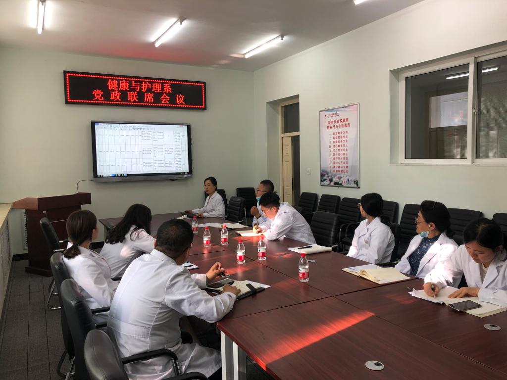 健康与护理系于2021年6月8日召开党政联席会议,讨论推荐学生拟发展对象情况,会议由党总支书记张静同志主持,系副主任、各支部委员、各专业负责人和全体辅导员参加。