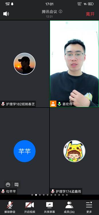 2021年4月18日,健康护理专业学生党支部利用假期时间于腾讯会议组织开展“学党史,忆校史,讲个人成长史”专题活动,由学生党支部书记姜宏伟主持,全体学生党员共同参加。