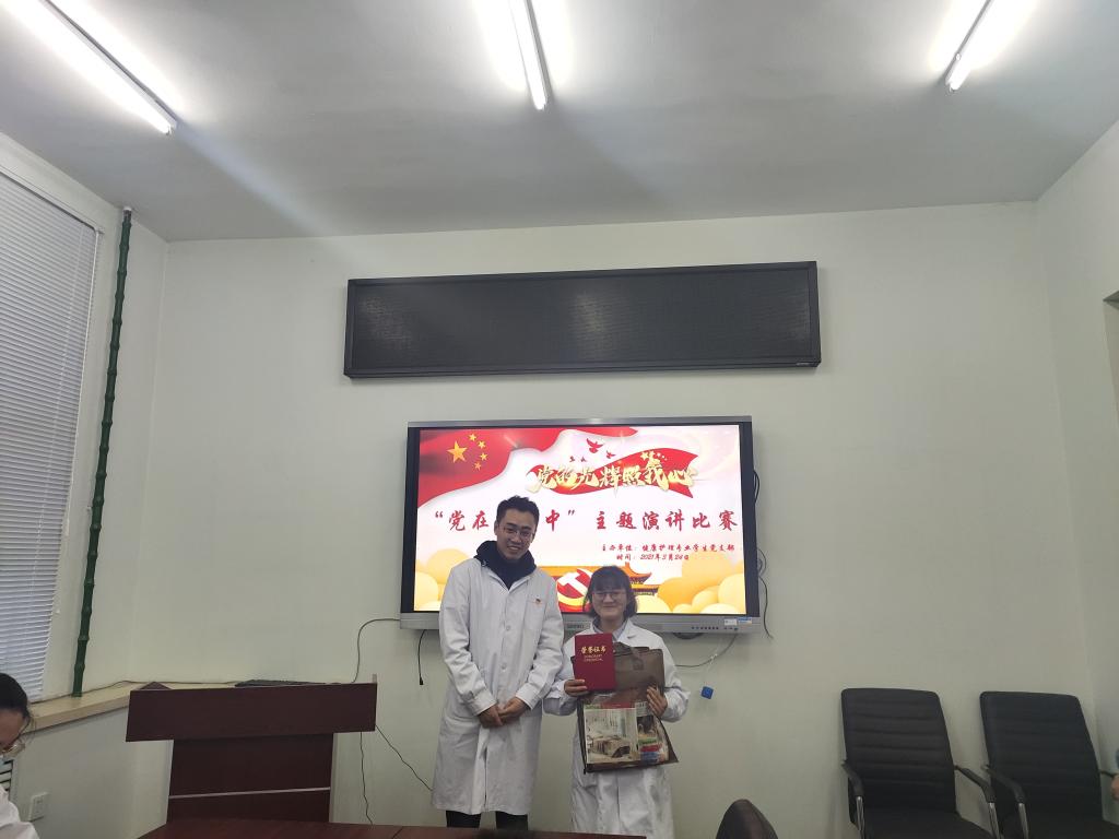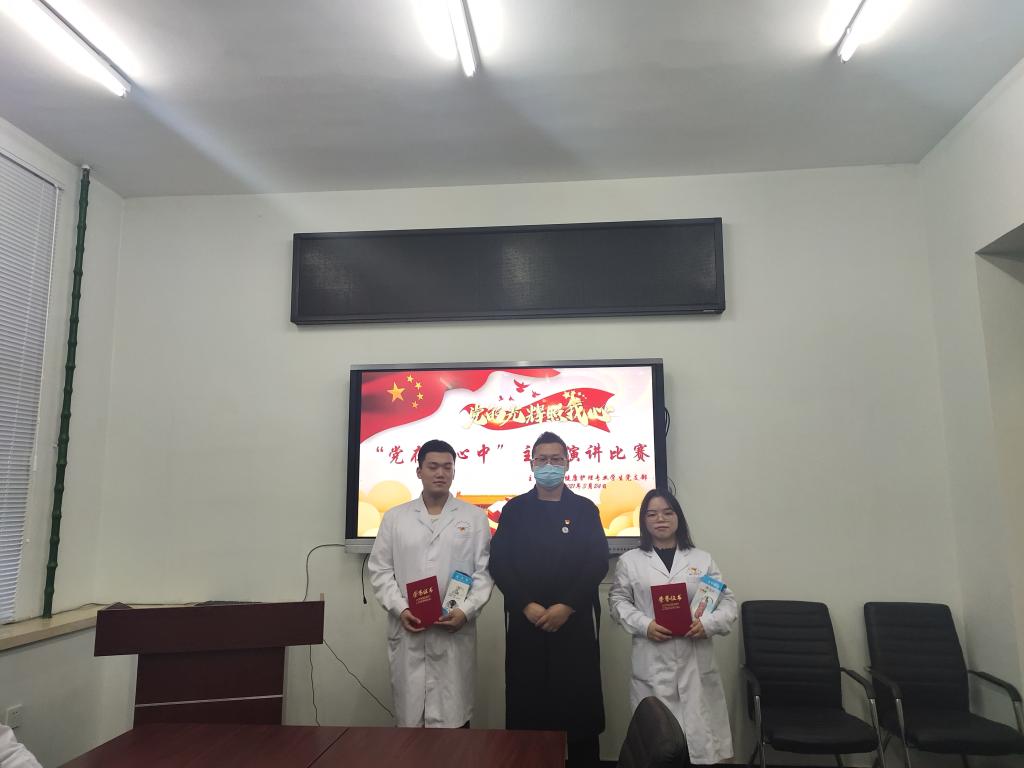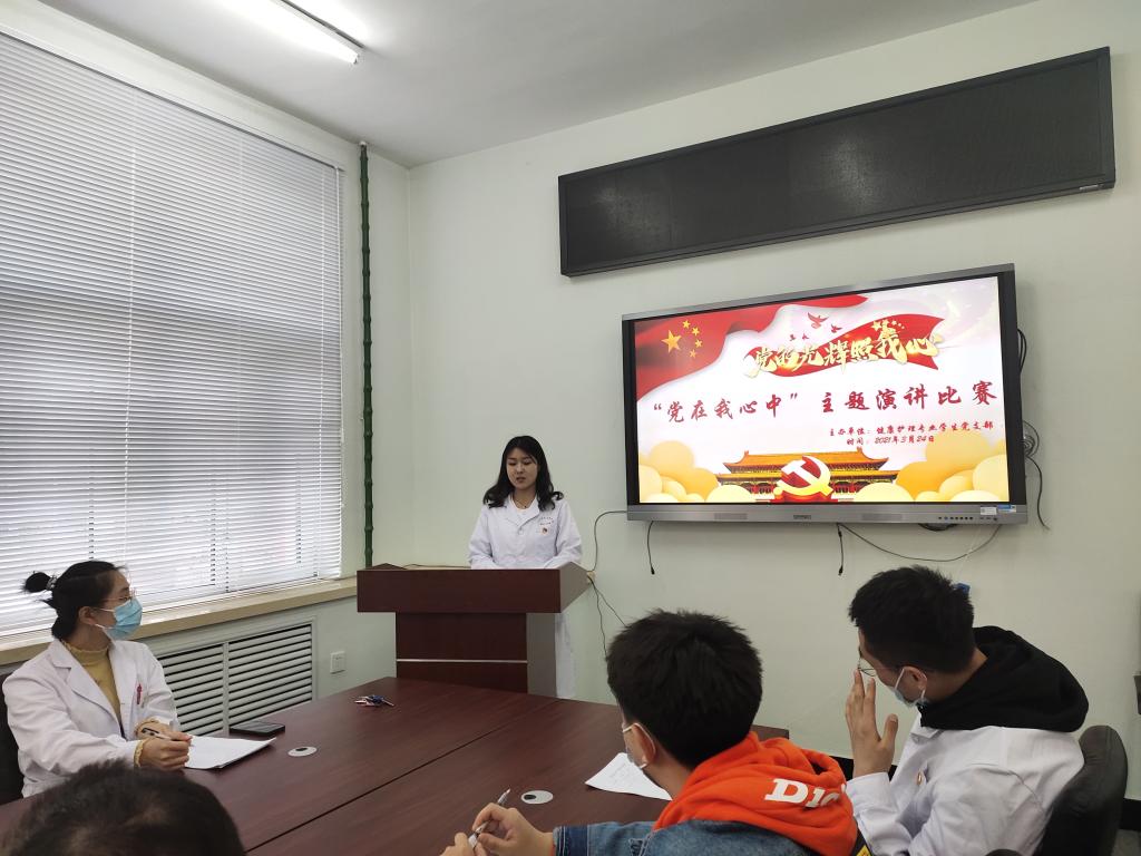 为纪念建党100周年,建校30周年,重温祖国光辉历程,增强同学们责任感和使命感。2021年3月24日,健康护理专业学生党支部于1#2104组织开展“党在我心中”主题演讲比赛,由健管181班周瑶主持,学生党支部书记姜宏伟、组织委员赵勇、宣传委员韩雪等共6人担任大赛评委,学生党员以及积极分子共15人参加。