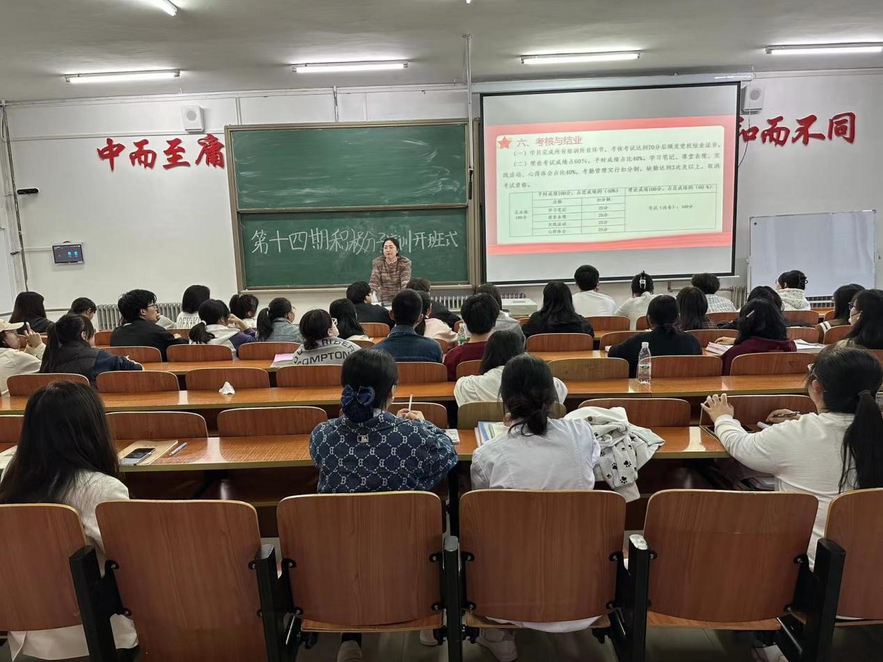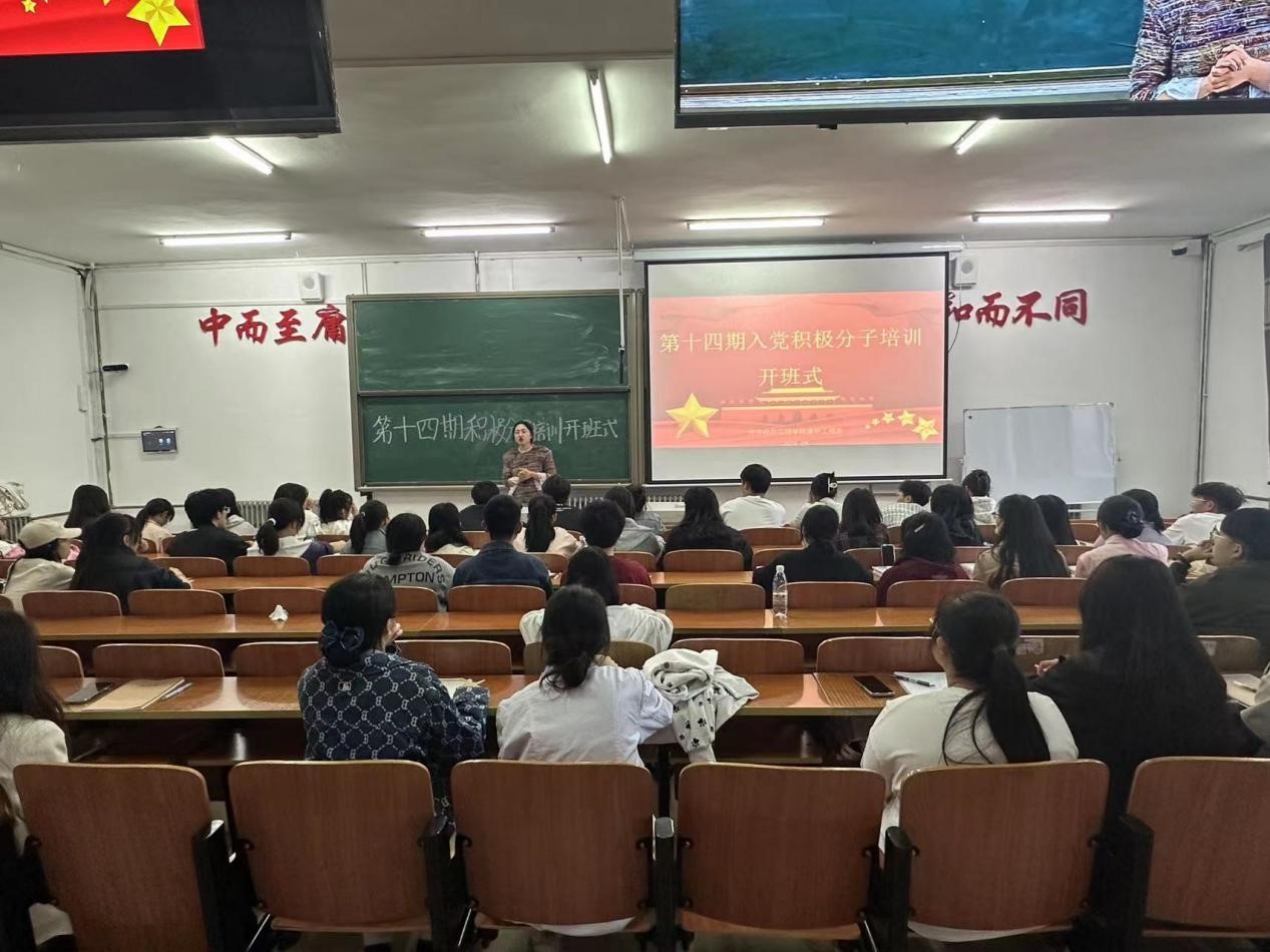 康护工程系2024年9月27日下午17:00-18:30时在1#1101开展了“第十四期入党积极分子培训开班式”本次会议由康护工程系康护专业学生第一党支部书记江丽娜主持。