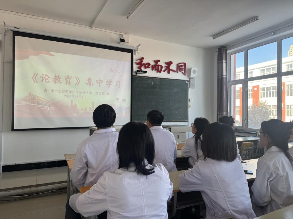 12月4日,康护工程系康护专业学生第一党支部组织开展了《论教育》集中学习会议,此次会议由党支部组织委员李安琪主持,深入学习贯彻习近平总书记关于教育的重要论述,推动支部党员深刻领悟教育的使命与担当,为培养新时代康护人才筑牢思想根基。