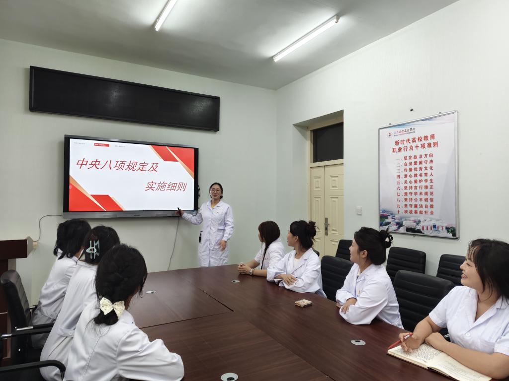 为了深入学习贯彻中央八项规定及其实施细则精神,强化学生党员纪律意识与作风建设,康护专业学生第一党支部于4月1日在一号教学区2104会议室组织专题学习活动。活动由学生第一党支部书记江丽娜同志主持。