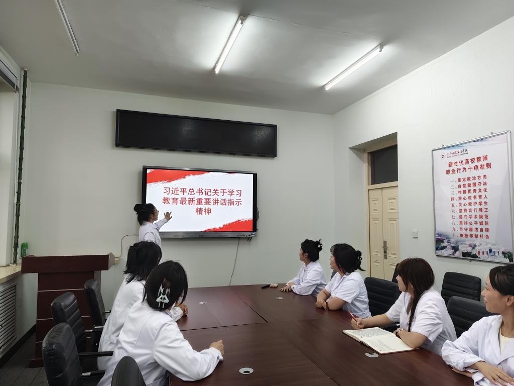 会议伊始,杨嘉琪同志带领全体党员认真研读习近平总书记关于学习教育的重要论述,详细解读了总书记对教育工作的新要求和新期望。她强调,习近平总书记的讲话为我们的学习和工作指明了方向,作为党员,要将学习教育与医学专业知识相结合,以更高的政治觉悟和专业素养,为未来投身医疗卫生事业奠定坚实基础。会上,党员们围绕总书记的讲话内容展开热烈讨论。大家纷纷表示,要牢记为人民服务的宗旨,不断提升自身的理论水平和实践能力,在学习中发挥先锋模范作用,以实际行动践行党员的初心和使命。同时,党员们还结合自身学习和生活实际,分享了如何将总书记的指示精神融入日常学习和科研工作中的经验与想法。