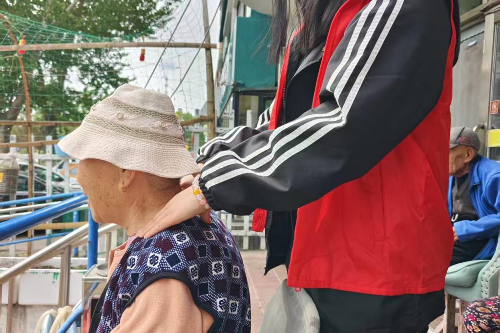 活动期间,大家还陪老人唠家常,听老人讲过往故事,适时点头回应、轻声提问,在门前广场既有八段锦的整齐口令,也有老人的笑声与叮嘱,整体氛围热闹又融洽。活动临近结束时,支部同学为老人进行按摩在按摩后,不少老人还主动跟着同学们复习按摩手法支部成员耐心指导后,与老人礼貌道别,向老人表达“后续会再来陪大家练八段锦、巩固保健知识”的意愿,随后有序结束本次服务活动。