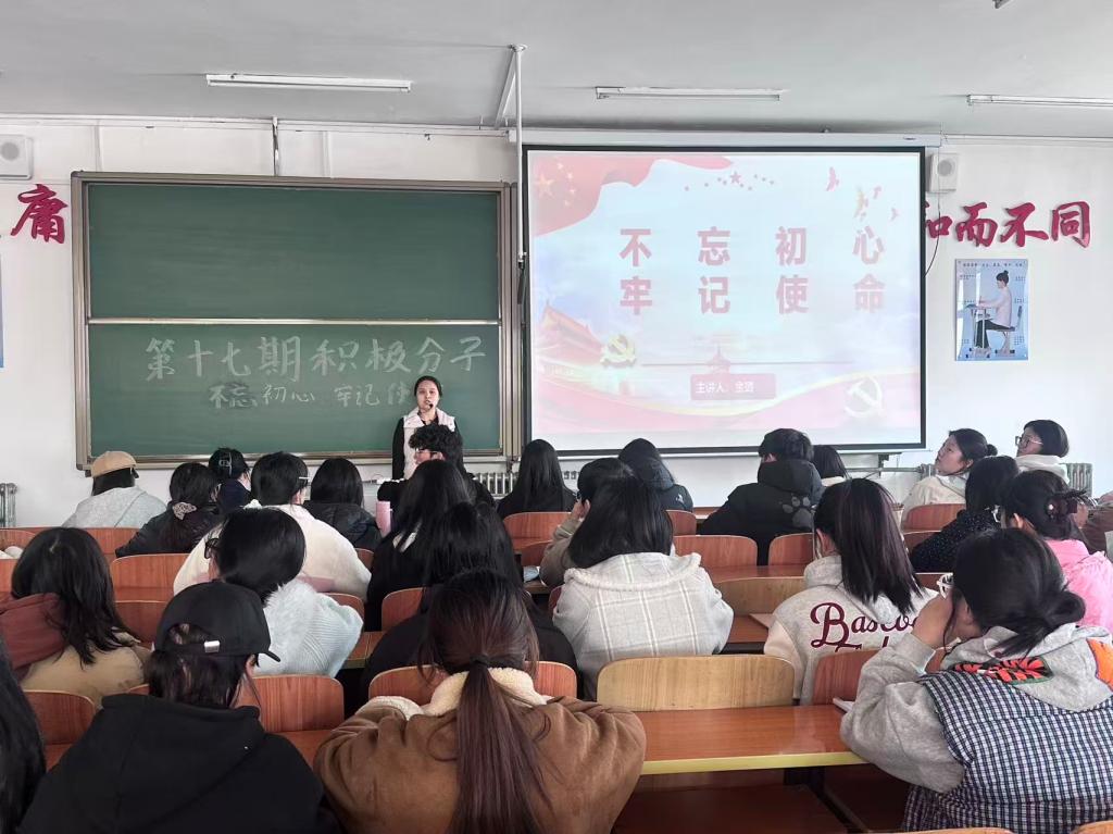 金璐同志以《不忘初心,牢记使命》为主题授课,结合新时代发展背景与青年责任使命,通过鲜活的基层实践案例,引导积极分子深刻把握初心使命的时代价值,树立“把个人成长融入国家发展”的理想追求。