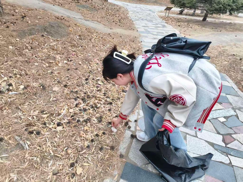 王诺老师带领入党积极分子在校内开展垃圾清理志愿服务活动,以实际行动践行责任担当,在劳动实践中锤炼品格、提升思想觉悟。