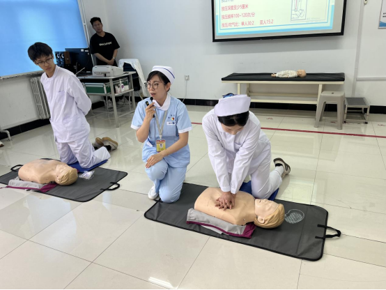 培训活动邀请康护工程系冯蕾和吴丽娜老师讲解急救相关知识要点,冯蕾老师详细讲解了心肺复苏急救操作流程,利用故事、图片等多元形式,清晰呈现抢救心脏骤停患者时,急救人员操作的正确手法,播放《最炫民族风》来辅助理解按压频率,让急救方法变得生动有趣、易于掌握。随后的急救操作学习成果展示环节,教师们进行实操练习,加深了大家对急救操作的理解。吴丽娜老师详细介绍了海姆立克急救法,包括异物卡住喉咙的表现和应对措施,结合生活实例让老师们充分认识到其重要性。