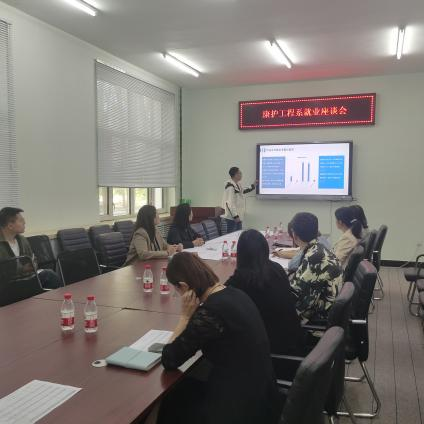 2024年5月31日8点10分在1#2104召开康护工程系2024届毕业生就业座谈会,康护工程系特邀常务副院长陈景鑫、学生发展中心负责人康静等参加座谈会,会议由党总支副书记姜宏伟主持,康护工程系主任郭玲玲、教学副主任张林琳以及各专业长专业教师参加。