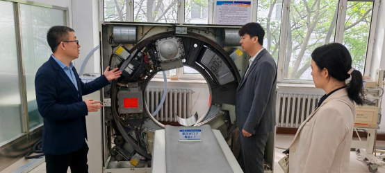 于广浩副院长对医学影像学院教育年史及专业建设情况进行了介绍,并带领学校教师对整个医学影像实习实践基地进行参观,包括CT/MRI设备原理与结构试验区、核医学与放疗设备试验区、X线机设备原理结构安装调试实验区等教学实践区域,详细讲解了操作设备设施在实践教学中的重要性。