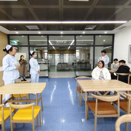 其次,在会议室进行了座谈,结合自己对项目作业的思考,同学们积极踊跃地向护士长进行提问,比如体检中心的沟通制度有哪些?体检后的健康服务有哪些?在讨论病例时,如何做到保护体检者的隐私等等。护士长给予一一解答。