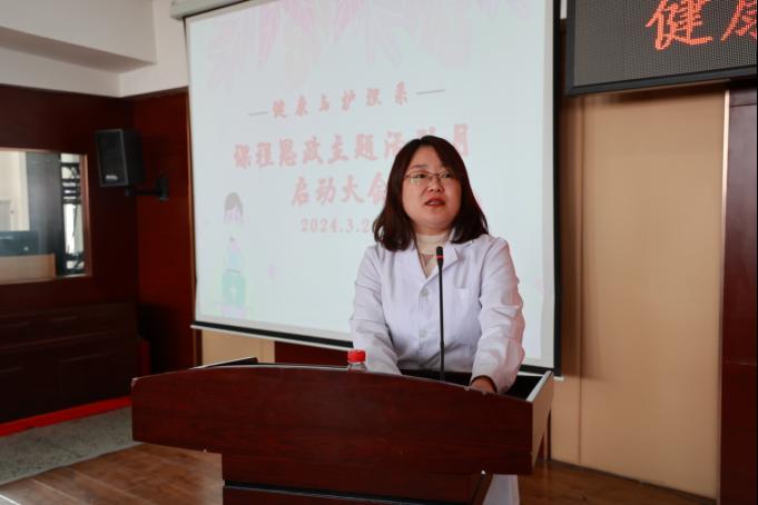 根据《齐齐哈尔工程学院课程思政建设实施方案》中相关要求,健康与护理系在“健康中国”战略背景下培养大健康行业的高素质应用型人才。为加快推进新医科建设,继续发扬标杆院系精神,落实我系深化医学人文的理念,由系党总支组织开展健康与护理系“课程思政主题月”活动,3月29日上午在图书馆501会议室举行启动大会,会议由系党总支书记张林琳主持,学校副院长张静、系主任郭玲玲、系部学科带头人杜红梅等200余名教师及学生代表参加启动大会。