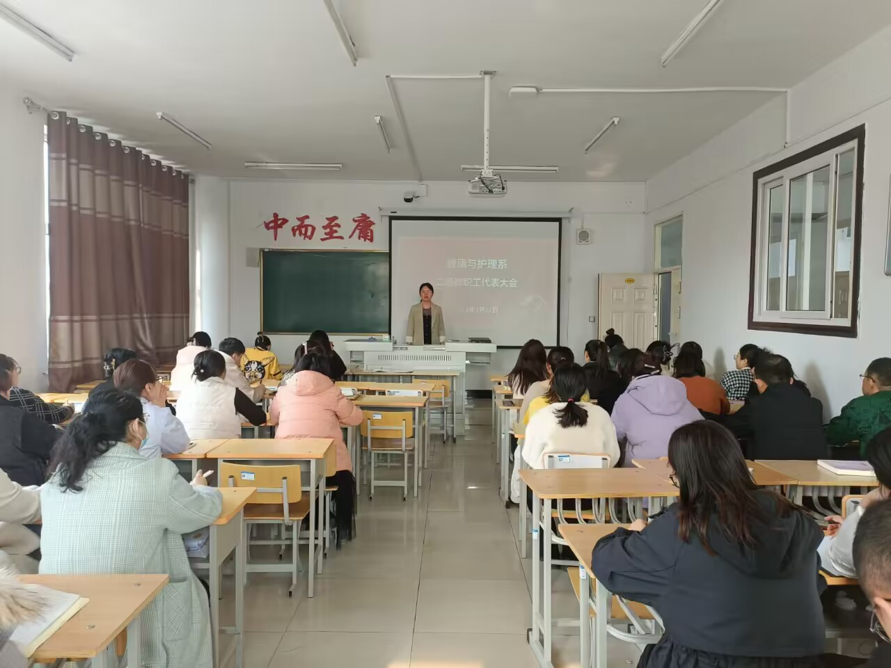 为全面贯彻落实学校十届三次教职工代表大会会议部署,2024年3月22日8:30,健康与护理系于1#1301组织召开二级教代会。本次会议由系主任郭玲玲主持,系部教职员工共计58人参会。