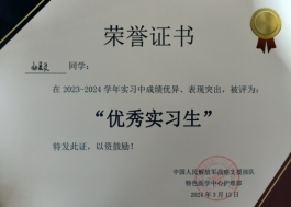 在北京战略支援部署特色医学中心实习的护理学206班张泉灵、护理学206班王子桐同学荣获“优秀实习生”荣誉称号。