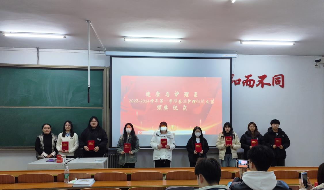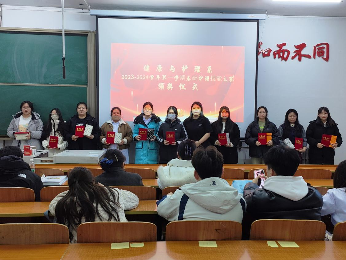 为表彰优秀,树立榜样,营造良好的学习氛围。2024年3月4日,健康与护理系在1#1101举行了2023-2024学年第一学期基础护理技能大赛颁奖仪式。颁奖仪式由健康与护理系教学副主任张林琳主持,护理学专业负责人孙晓雪、护理学22级辅导员李安琪、21级技能学长寇嘉琪出席会议并为获奖学生颁奖。