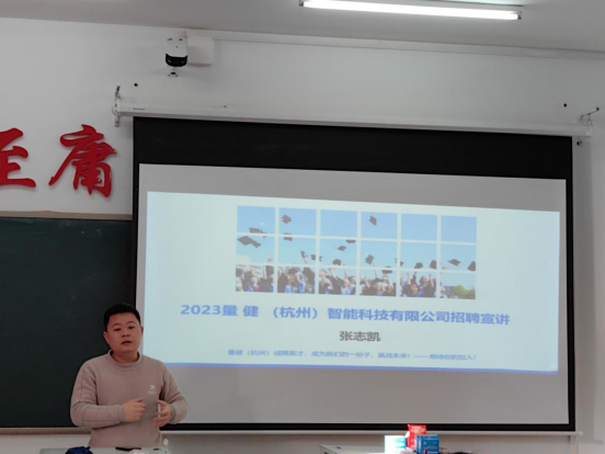 根据实习宣讲工作安排,19日上午,张志凯经理从量健(杭州)智能科技有限公司发展的历程、发展前景、薪资福利待遇、人才需求、健康服务行业发展等方面为健康服务与管理专业2021级全体学生进行宣讲,并对同学们提出的问题进行耐心地解答。