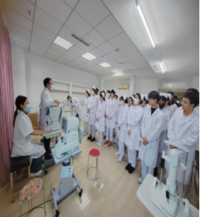 本次见习由见习指导老师李岩带领。医院眼视光中心对同学们的到来表示欢迎并介绍了本次见习的时间安排及相关规定,引领同学们参观了中心开展的特色治疗项目,随后,同学们按照分组跟随各自带教老师,正式开始见习。