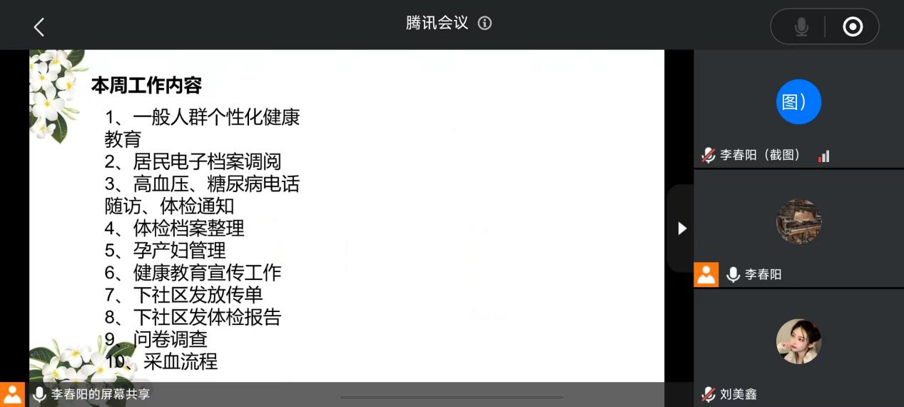通过这次线上的总结会,同学们对专业实践学期的实习中积累了一定的实践经验,但在面对一些复杂的情况时,还缺乏足够的应对能力,也会继续努力,不断提高自己的专业素养和综合能力,为社区卫生服务事业的发展贡献自己的力量。