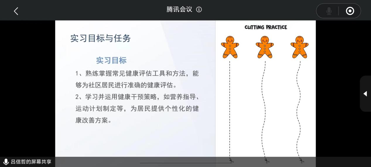 首先,刘瑞老师为我们讲解了进行专业实践时的注意事项以及该如何高质量地去完成专业实践并且要及时完成手册上的任务。随后建设社区由李春阳和西大桥社区吕信哲同学进行分享汇报,其中分享了建立和完善居民健康档案,对居民的基本信息、健康状况、家族病史等进行详细记录和整理等。然后,刘瑞老师总结以上汇报问题,并规定实习规范事宜,如请假流程、实习礼仪、安全问题等。最后,刘瑞老师告诫大家在实习中同学们要对别人的建议虚心听取,把握实习机会,主动向带教老师和同事请教问题,不断丰富自己的知识和技能。并努力学到把课本学到的知识应用到实际工作中,尽力做到理论和实际相结合的最佳状态。旨在让我们将所学的理论知识应用于实际工作中,熟悉社区卫生服务的流程和内容,提高实践能力和综合素质,为今后的职业发展打下坚实的基础。
