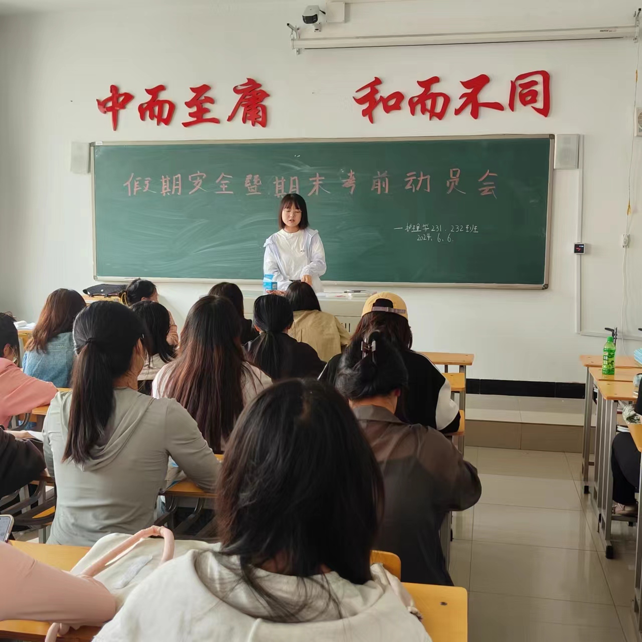 随着学期末的脚步临近,为了确保同学们在假期期间的安全,同时为即将到来的期末考试和四级英语考试做好充分准备,护理学231班与护理学232班于2024年6月7日周五下午在1#1208教室召开了“假期安全暨期末考前动员”主题班会。本次班会由辅导员王诺主持,护理学231、232班全体同学积极参与。