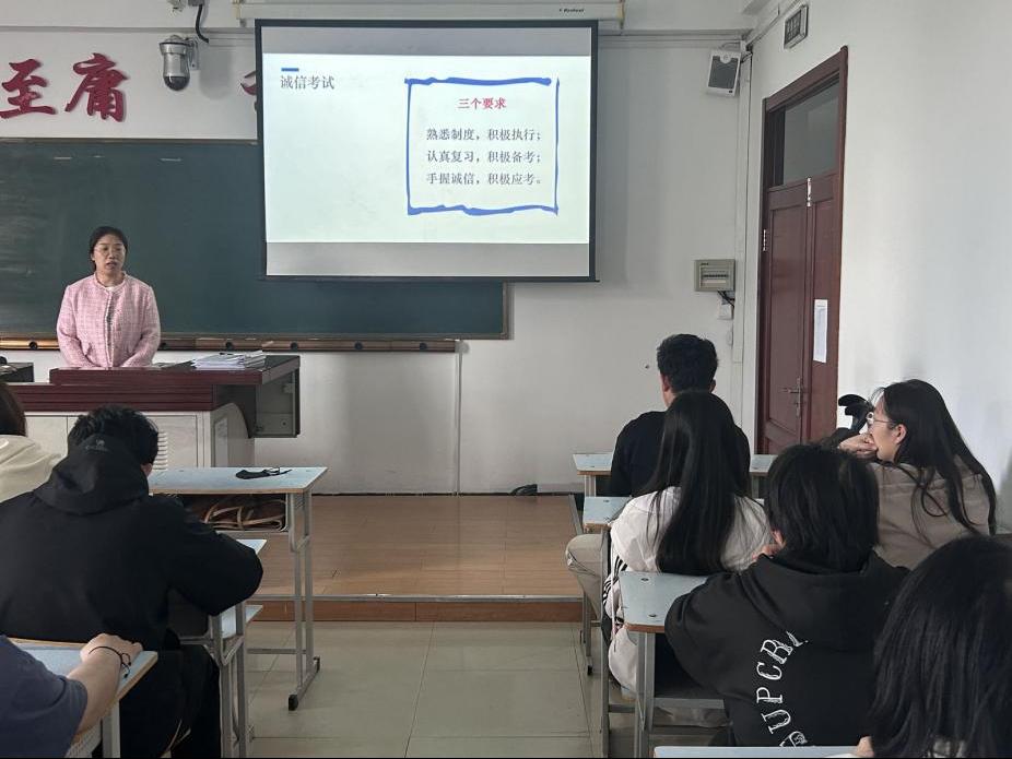 在会上,吴宪玲老师着重指出,期末考试不仅是对学生们一学期学术成果的考核,更是对学生诚信品质的检验。考试的公平性和公正性与考风考纪息息相关。她要求所有学生严格遵守考场规定,坚决杜绝任何形式的作弊。此外,吴老师还详尽地阐述了作弊可能带来的严重后果,以此警示学生们不要因小失大,以免影响自己的学业和前途。