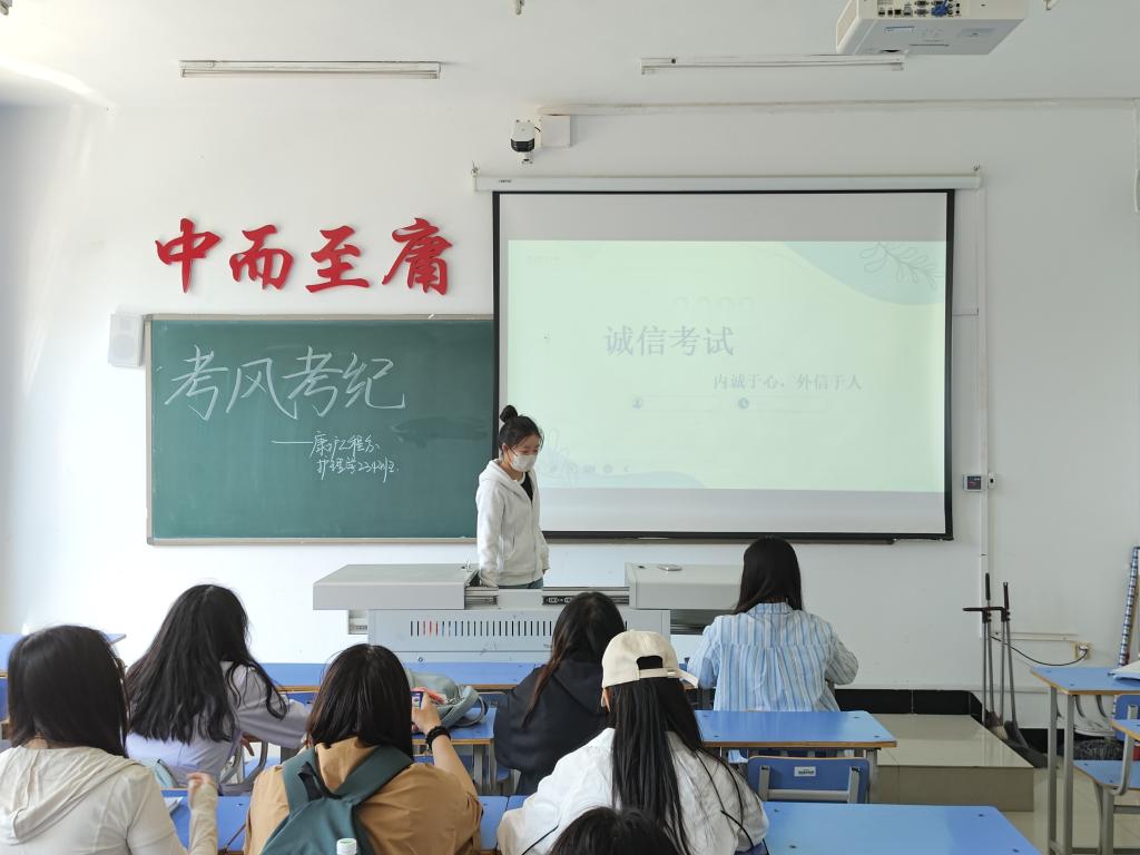 会议伊始,团支书李佳提醒同学们带好身份证、学生证两个证件,英语听力耳机装配电池。团支书通过介绍以往作弊受到纪律处分的案例,使同学们深刻认识到违反考试纪律应承担的责任和严重后果,并引以为戒。同时,针对思想压力大的学生,团支书加强了心理指导,帮助他们克服考试焦虑情绪,树立信心,以良好心态迎接期未考试。最后,李佳带领全班同学庄严宣誓,承诺在今后的所有考试中严格遵守考试纪律,做到诚信考试,以实际行动践行诚信理念。