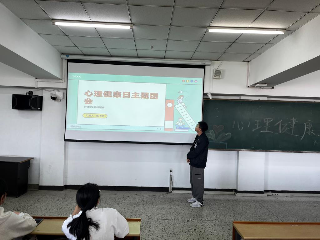 为了增强心理健康意识,促进交流互动,营造良好氛围,助力成长。为此,2024年5月28日,护理学235班于图书馆401组织开展“心理健康日”主题团活。此次团活由护理学235班团支书陈飞宇主持开展。