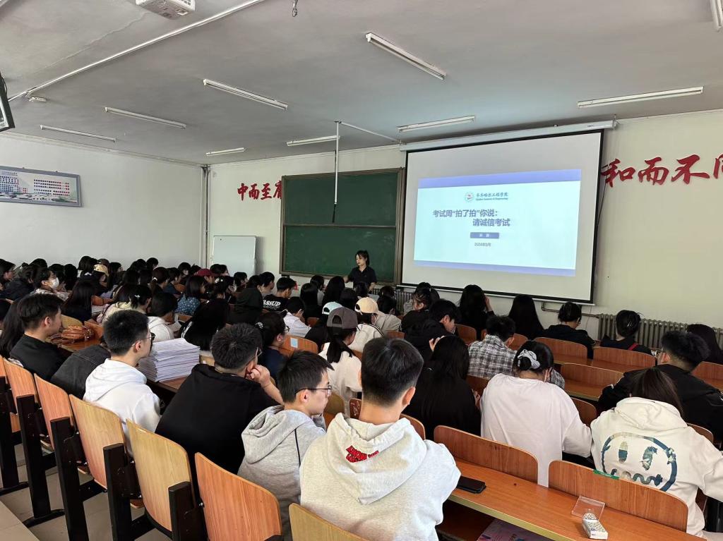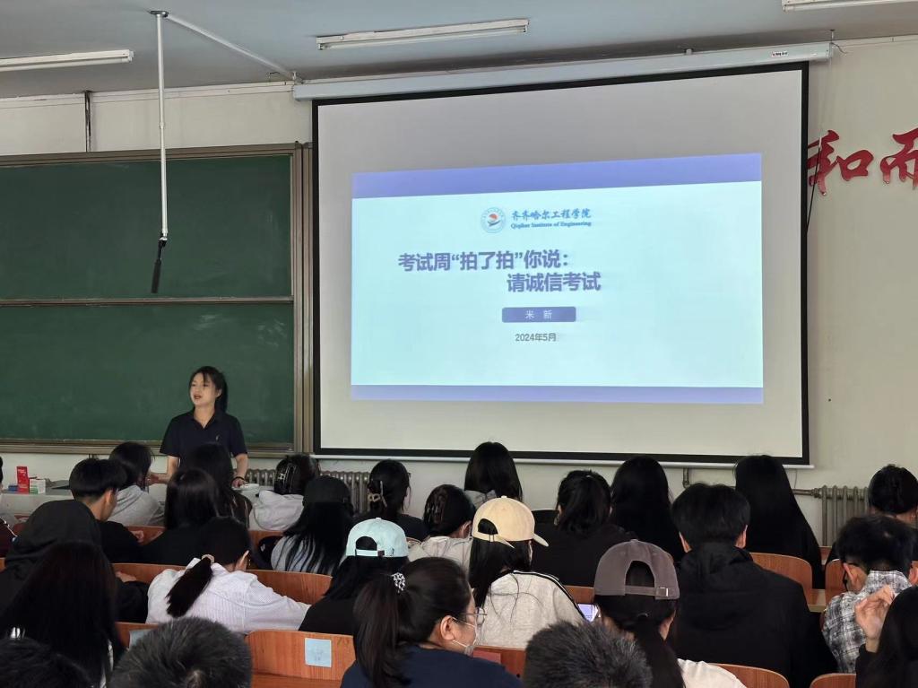 会议伊始,辅导员米新围绕“诚信”进行讲解,向同学们公布了考试纪律以及应注意的事项,并列举如有违纪行为学校的相对措施、来教育同学诚实守信。就如何备考、如何调整考试心态提出了几点建议。米新老师理论结合实际,教育同学们如何做一个诚实守信的人,并与学生就这个话题进行了交流,同学们发表自己对诚信的认识和看法,米新老师对班会做了总结,并预祝同学们取得优异成绩,