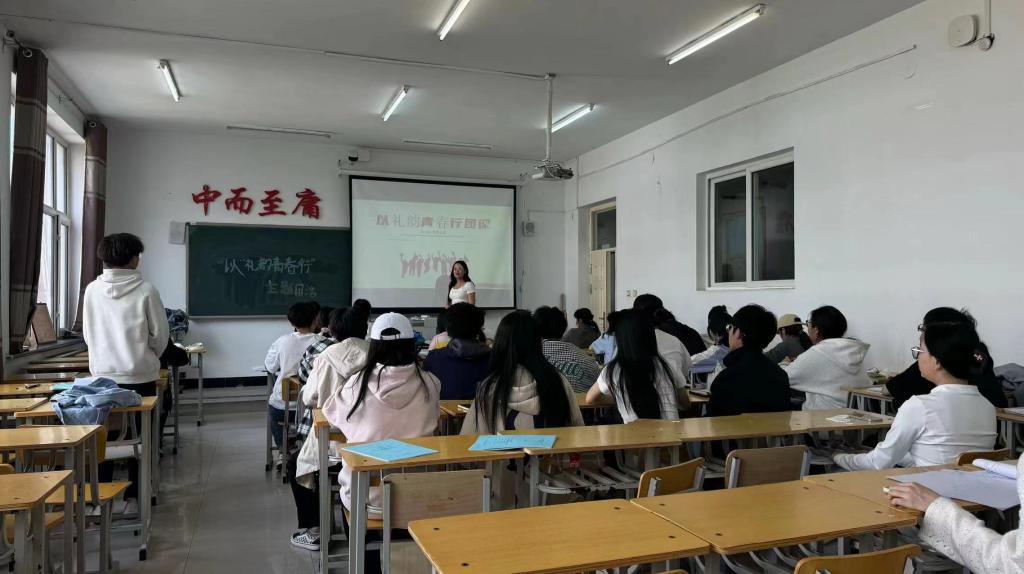 最后团支书张佳慧对本次活动进行总结通过学习文化礼仪,大学生不仅能够在个人层面获得成长和提升,还能在社会层面促进文明进步和社会和谐。