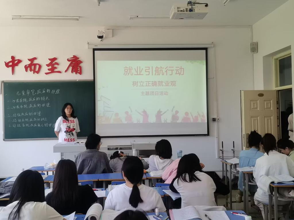 为深入贯彻落实党的二十大精神,引导学生树立理性、平实的择业观、就业观,提升就业能力。2024年5月24日,康护工程系助产学211班于1号教学区1204组织开展了以“大学生就业引航计划”为主题的团日活动。本次活动由团支书钱艺月主持,助产学211班全体同学参加。