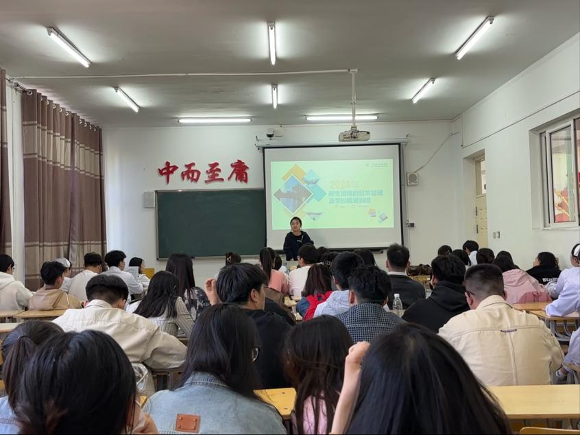 培训开始,辅导员米新介绍新生班级的日常管理及规章制度,在培训过程中,深入探讨了新生班级日常管理的各个关键方面。明确了要积极关注新生的学习状态、生活情况和心理动态,及时给予引导和支持。强调了建立良好的沟通渠道的重要性,以便随时了解新生的需求和问题。对于学校规章制度的培训,学长们系统学习了各项规定,包括学籍管理、考勤制度、行为规范等。深刻认识到只有自身对规章制度充分理解和掌握,才能准确地向新生传达和解释,确保新生能够遵守并融入校园秩序。