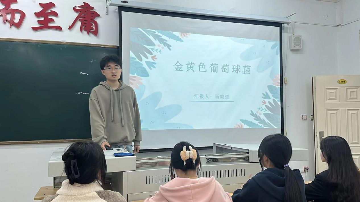 宣讲会上,靳晓燃同学首先介绍了金黄色葡萄球菌的基本知识,包括乙肝的特性,危害,预防措施等,让同学们深刻认识到金黄色葡萄球菌的危害性和预防的重要性。通过此次宣讲提高同学们对金黄色葡萄球菌的认识和防范意识,让更多人了解该菌的危害和预防措施。