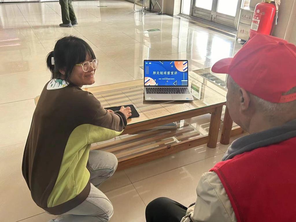2024年5月10日,齐齐哈尔工程学院健管231班学生张汉美去到了齐齐哈尔市铁峰区向晖北街与永平路交叉口西100米处的夕阳红托养院,在那里和爷爷奶奶们科普了肺炎链球菌,其目的是让他们对这种常见的病菌了解一定的知识并且知道怎么去预防与治疗。