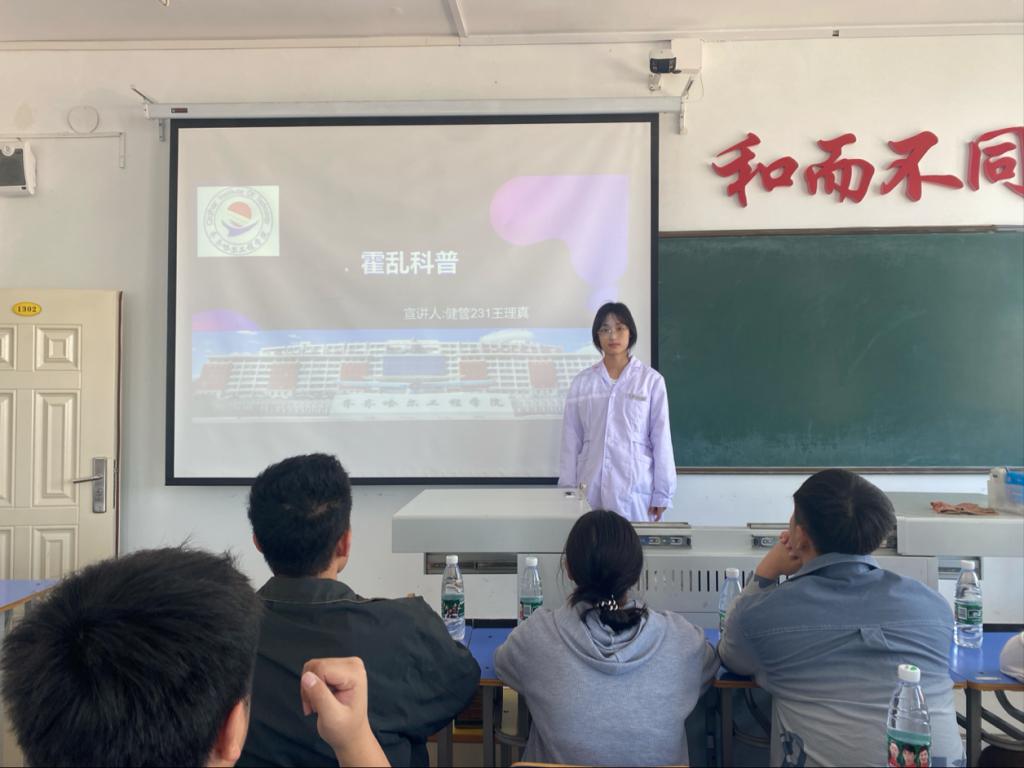 为向同学们普及病原相关知识,王理真于2024年5月9日在齐齐哈尔工程学院1#1302成功举办一场有关霍乱的知识科普宣讲,本次宣讲吸引了以许诗思同学为代表的十余名同学参与。