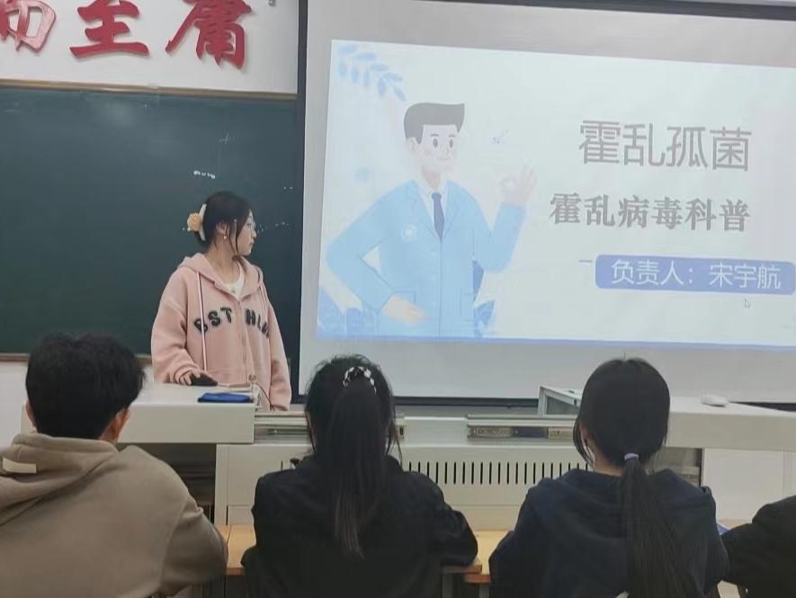 2024年5月8日,齐齐哈尔工程学院健管231班学生宋宇航,为同学们进行了一场关于霍乱弧菌的科普讲座。宋宇航同学详细介绍了霍乱弧菌的生存能力、生存环境、传播特点以及预防方法等方面的知识。
