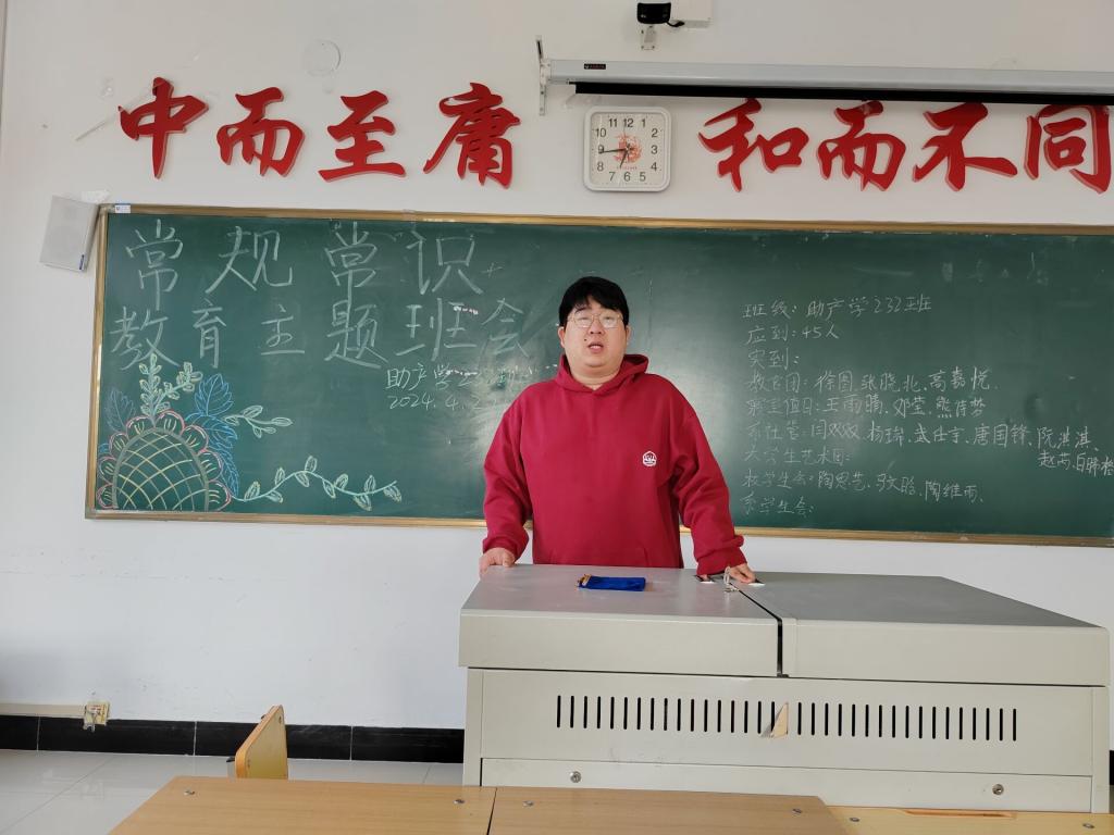 班会伊始,辅导员孙名序老师为同学们讲解常规常识教育,是指在日常生活中,培养同学良好的行为习惯、道德品质和基本的生活技能,使同学具备健康、安全、文明、和谐的生活态度和方式。让同学们了解并遵守社会规范,提高自身素质,为未来的学习和生活打下坚实基础。此外,辅导员孙名序老师强调安全常识。