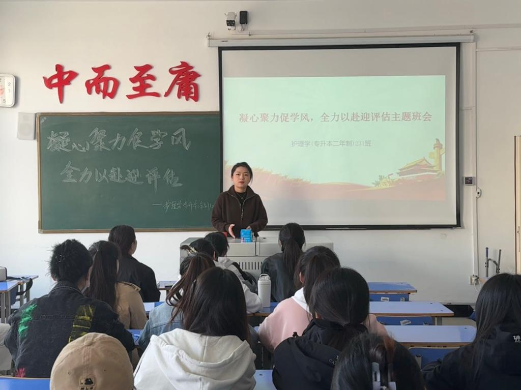 学风建设的意义在于学风是一个学校的灵魂,这个灵魂的建设需要我们共同努力,学风是治学、读书、做人的风气,是一所大学的灵魂和气质,也是一个班级的立班之本。优良学风是激励学生奋发向上、努力成才的无形而强大的精神力量,是提高育人质量的重要保证。2024年4月17日,护理学(专升本二年制)231 班于 1#208组织开展“凝心聚力促学风,全力以赴迎评估”主题班会。本次班会由辅导员米新主持召开,护理学(专升本二年制)231 班全体成员参加。