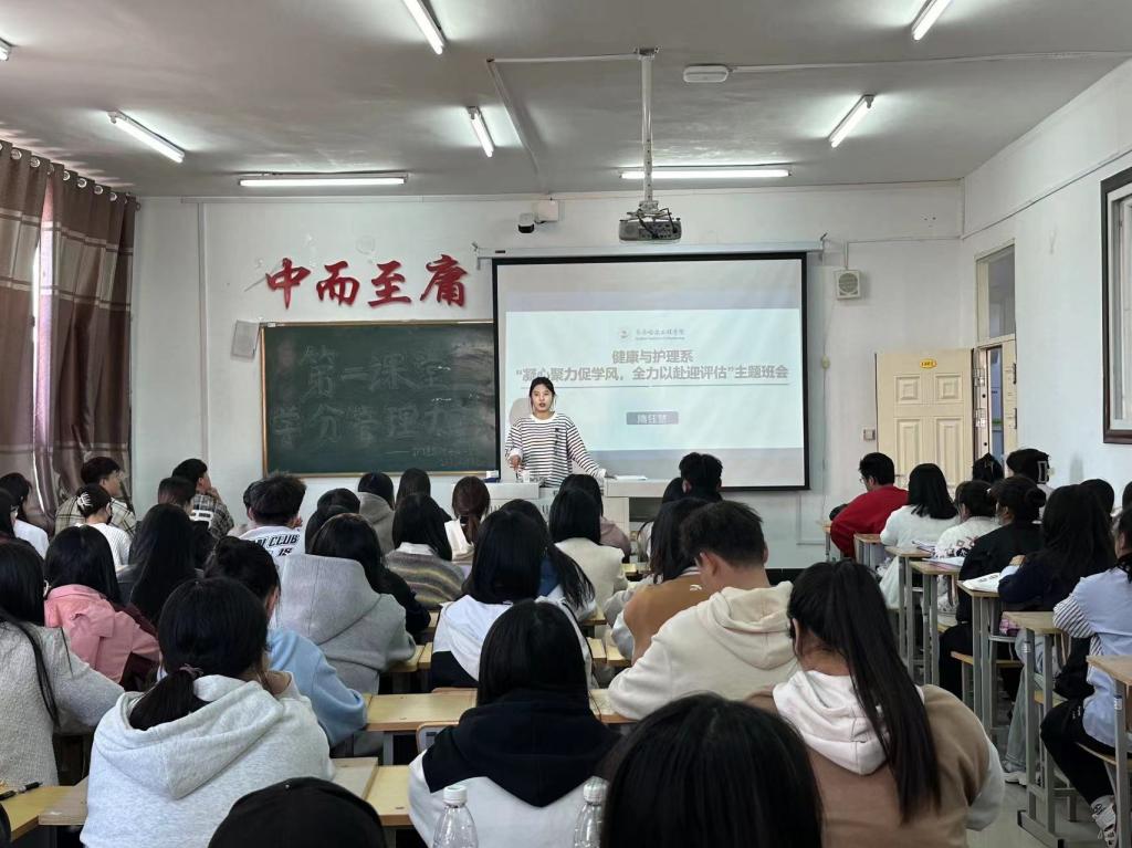 为增强同学们的学风意识,凝聚班级力量,共同营造浓厚的学习氛围,做好迎评估的充分准备。为此,2024年4月19日,护理学(专升本二年制)234班于1#1205 组织开展“凝心聚力促学风,全力以赴迎评估”主题班会,本次班会由辅导员隋钰慧主持,护理学(专升本二年制)234班全体成员参加。