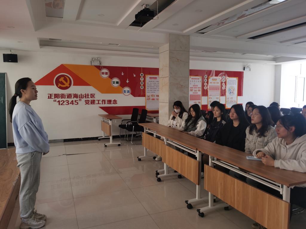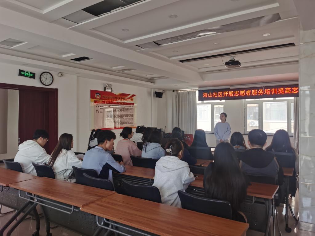 活动环节一,志愿知识。由海山社区志愿服务负责人讲解志愿的历史起源、志愿礼仪以及志愿精神。活动环节二,齐工程青年志愿汇。同学们分享志愿活动经历及活动心得。活动环节三,志愿安全。青工委员讲解志愿活动中的交通、财务和人身安全,以及遇到危险情况时的处理方法。