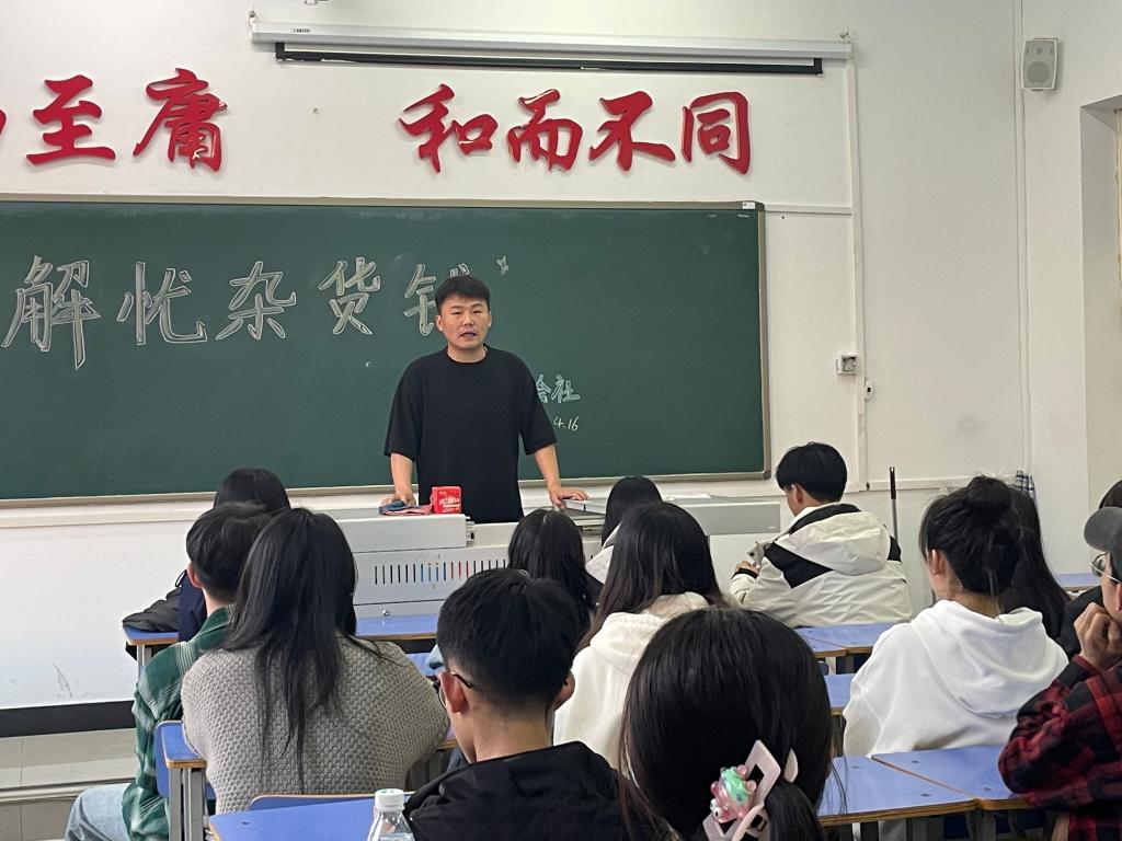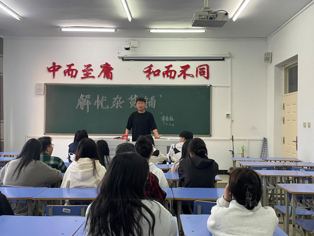 四月十六日十八时在一教1207,友幸相识,不期而遇社团开展了解忧杂货铺:爱回应心灵社团活动。随着生活节奏的加快,心理健康问题日益受到关注。为了提供一个让学生释放压力、分享心声和获得心理支持的场所,我们策划了"解忧杂货铺:爱回应心灵"活动。该活动旨在通过互动式、体验式的形式,为学生带来心灵上的慰藉与支持。