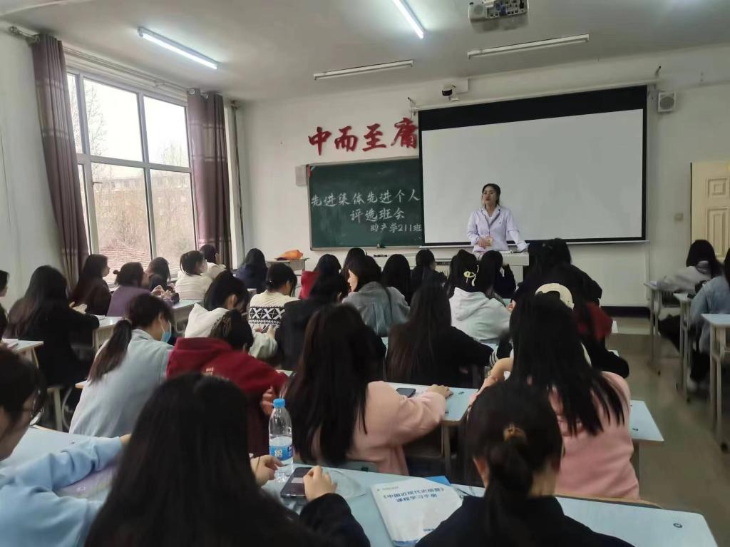 为加强学校学风建设,促进学生德智体美劳全面发展。2024年4月15日,健康与护理系助产学211班于1#1201组织开展“先进个人先进集体评选”主题班会,本次班会由辅导员江丽娜主持,助产学211班全体成员参加。