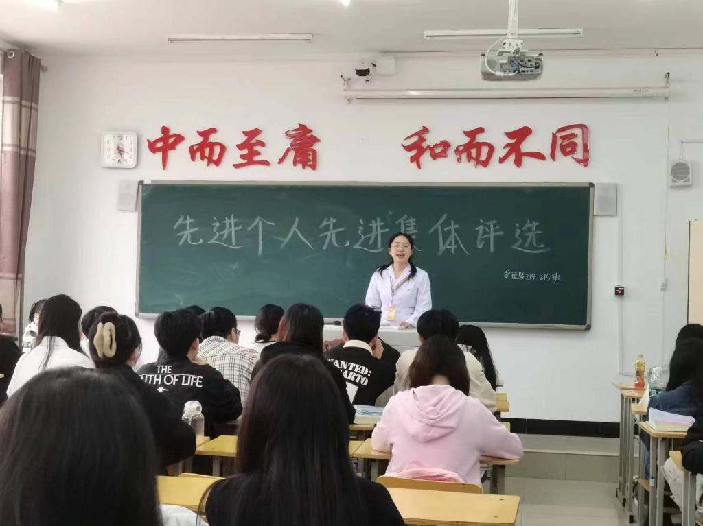 2024年4月15日,护理学214、215班班于1#1208组织开展“先进个人先进集体评选”主题班会,本次班会由辅导员江丽娜主持开展,护理学214、215班全体成员参加。