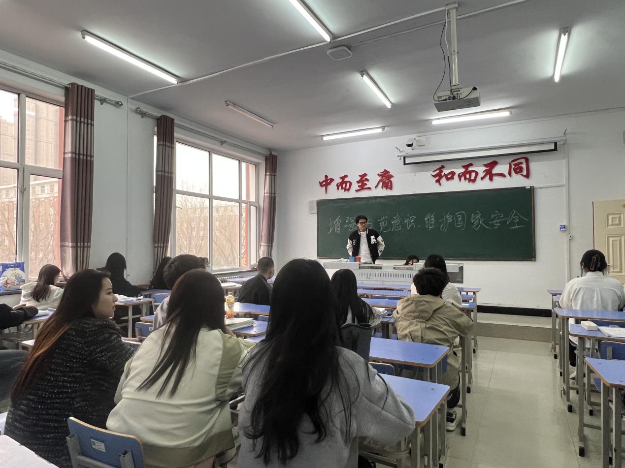首先,化战永向全体同学介绍了国家安全的重要性以及当前面临的安全形势,通过生动形象的案例及数据,让全体同学深刻认识到,国家安全与每个人的生活息息相关。为了增强同学们的直观感受,接着全体同学观看了总体国家安全观主题宣传片《护你安澜》,使同学们更加深入地了解了国家安全面临的形势和挑战。