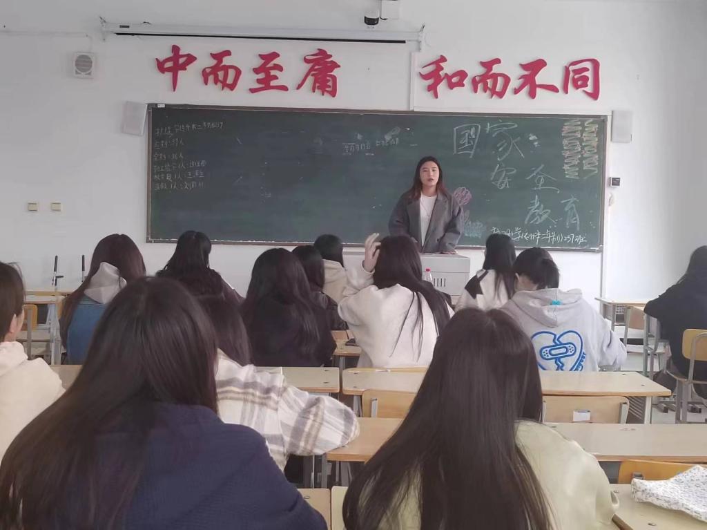 会议伊始,辅导员隋钰慧首先为同学们介绍了国家安全的含义,并声明:一国尽乱,无有安家,一家皆乱,无有安身,强调了国家安全是国家生存发展的基本前提,有了国家安全,才有安定的生活和发展环境,随后,呼吁大家一旦发现危害国家安全的情况,要及时向国家安全部门举报,形成全社会共同防范、共同监督的氛围,把风险隐患绝于未然。