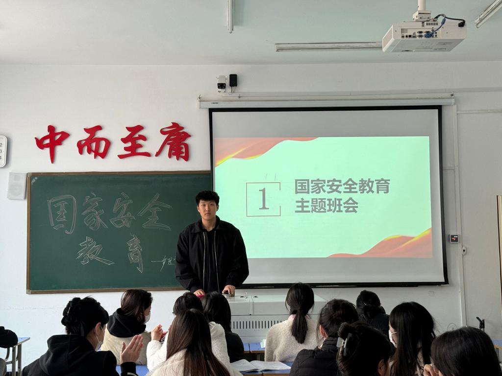 会议伊始, 班长赵明杨介绍在平时,同学们也应该时刻保持对安全问题的关注。有关部门会定期发布安全警示和注意事项,同学们应该及时了解并采取相应的措施。此外,通过养成良好的生活习惯和行为习惯,同学们也能够提高自己的安全意识。记住,安全教育是一个长期、渗透式的过程,同学们不能仅仅依靠国家安全教育日来提高安全意识,每个人都应该时刻保持警惕,不掉以轻心。只有每一个人都做好自己的安全防范工作,才能为国家的安全稳定作出贡献。大学阶段,国家安全教育将重点围绕理解中华民族命运与国家关系,践行总体国家安全观。同学们要系统掌握总体国家安全观的内涵和精神实质,理解中国特色国家安全体系,树立国家安全底线思维,将国家安全意识转化为自觉行动,强化责任担当。