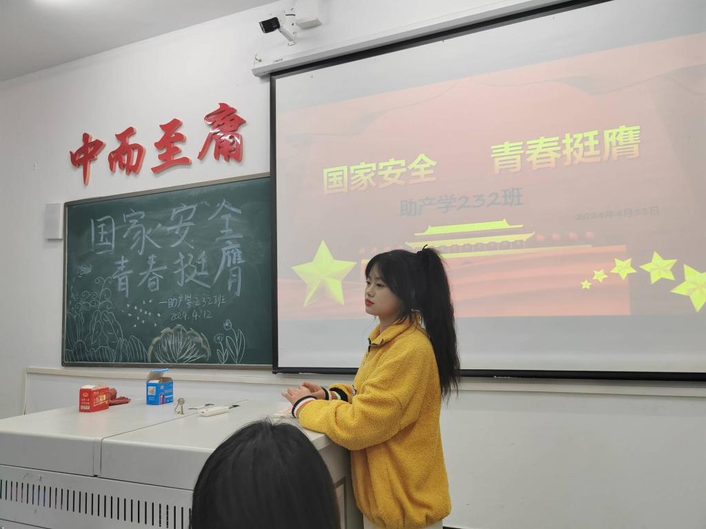 为了增强青年的国家安全意识和素养。为此,2024年4月12日助产学232班组织开展“国家安全 青春挺膺”主题团活。本次团活由团支书王婷组织开展,助产学232班全体同学参与。