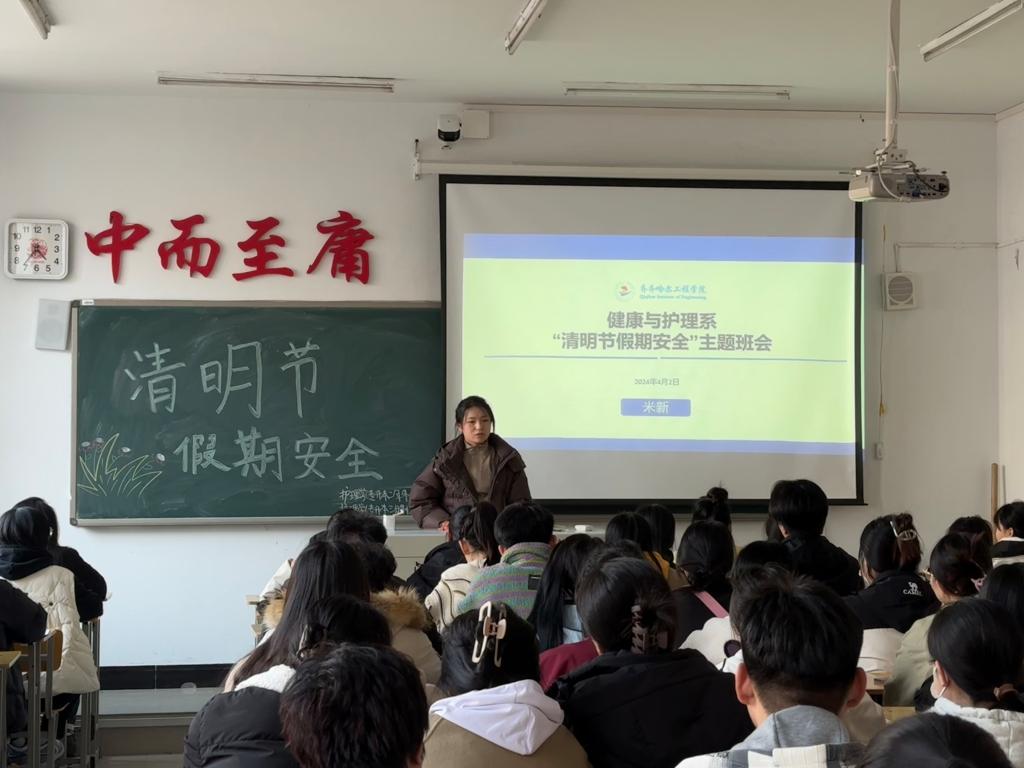 为了提高同学们遵纪守法观念和自我防范能力,增强同学们的安全意识,使同学们做到居危思安、防患于未然,度过一个平安的清明节假期。2024年4月2日,护理学(专升本二年制)231 班于 1#208组织开展“清明节假期安全”主题班会。本次班会由辅导员米新主持召开,护理学(专升本二年制)231 班全体成员参加。