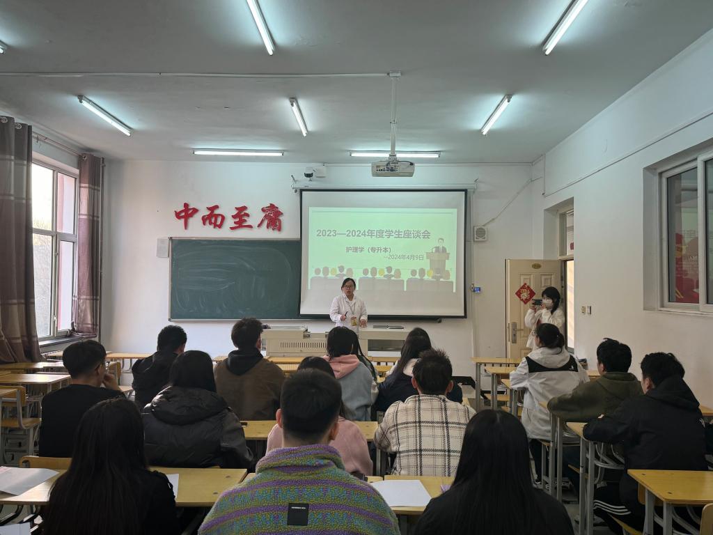 2024年4月9日,护理学(专升本)专业长助理苏森森老师于1#213召开了2023—2024年度学生座谈会。健康与护理系党总支副书记姜宏伟,辅导员老师米新,辅导员老师隋钰慧,护理学(专升本)全体班长、团支书共18名同学共同参加。