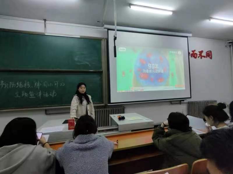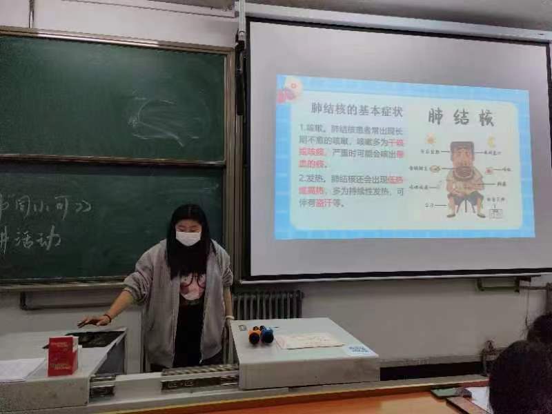 活动初期,青工部长王悦详细介绍活动规则,同学们回应非常积极,纷纷表示会积极响应活动,同学们通过自己查询预防肺结核病的资料,并把资料进行整合并加入自身的想法,制作出各式各样充满创意的PPT,并在讲台上进行结合演讲,向同学们普及《预防结核,“肺”同小可》。此次活动中,他们的PPT图文结合,生动形象、风趣幽默的演讲,为同学们介绍了肺结核病的危害、症状以及传播途径,并展示了肺结核病的预防措施和治疗知识,希望通过自己的方式增强同学们的健康意识“肺”同小可。